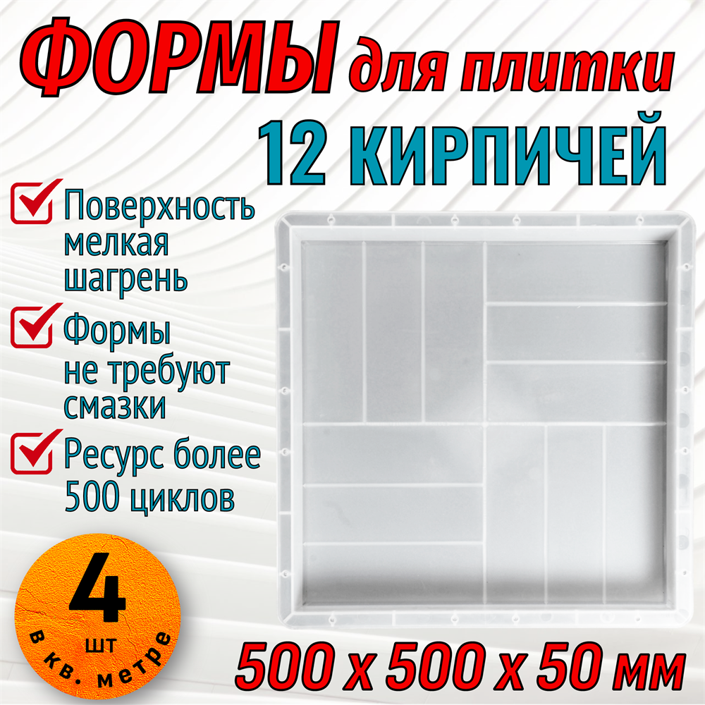 Купить форму для тротуарной плитки 12 кирпичей мелкая шагрень 50*50*5 см в Екатеринбурге.