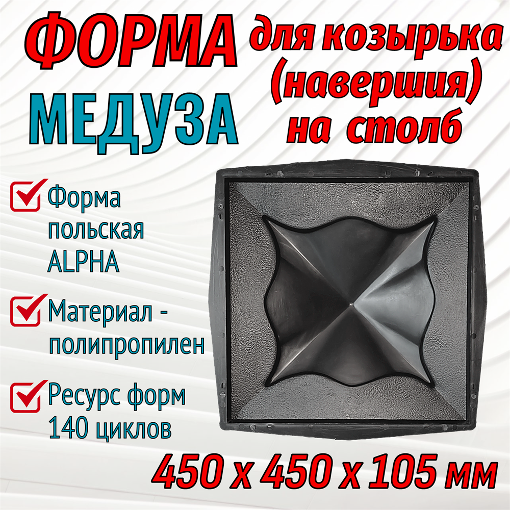 Купить форму для козырька Медуза 450*450*105 мм для изготовления бетонного навершия на столб.