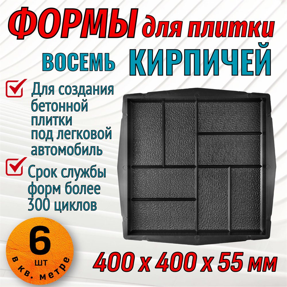 Купить форму для тротуарной плитки 8 кирпичей крупная шагрень 40*40*5,5 см в Екатеринбурге.