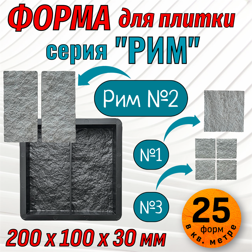 👆 Одна пластмассовая форма Рим №2 производит из бетона сразу два прямоугольных элемента, каждый из которых имеет размер 20*30 см и толщину 3 см.